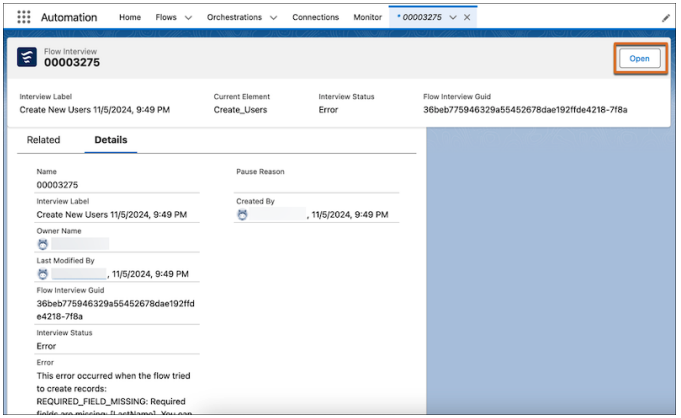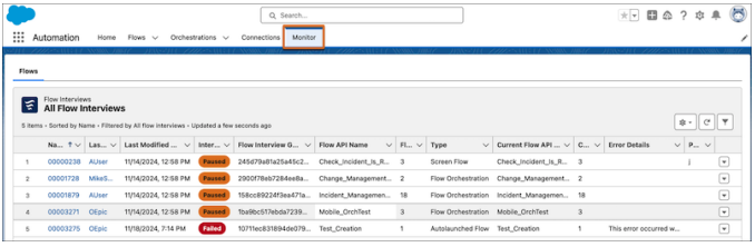 Monitor Failed / Paused Flow Interviews from the Automation Lightning App