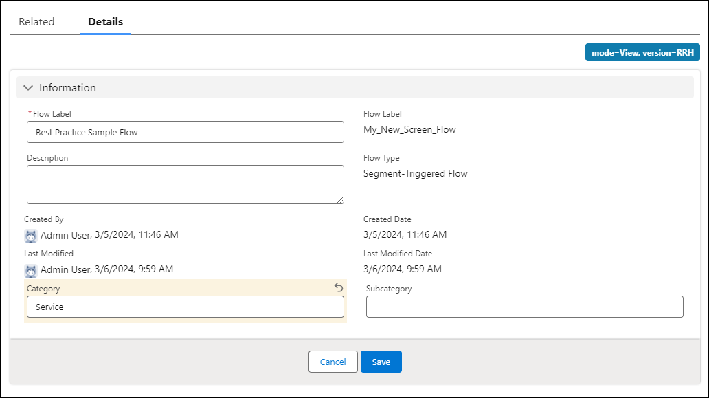 The Automation app also introduces two new text fields to the flow record Details page – Category and Subcategory. Admins can use these fields to group their flows and apply them to filters in list views.
