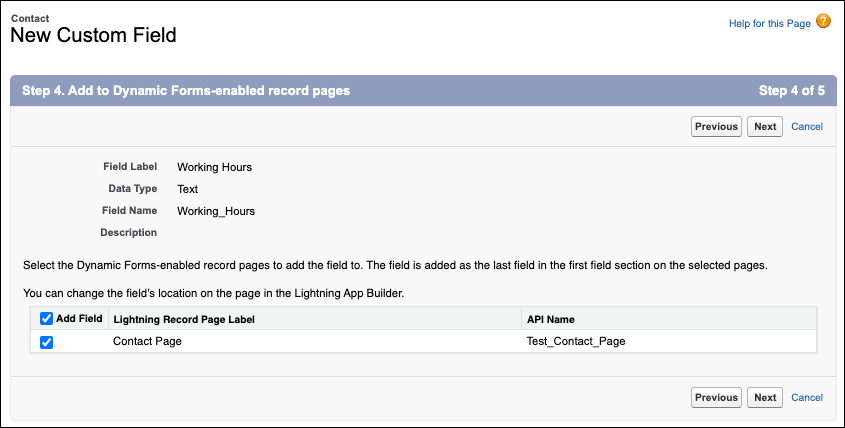 When creating a new field in the object manager, it can be added directly to a dynamic-form enabled record page from the same setup screen.