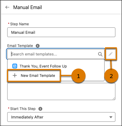 Prior to Summer ‘24, users had to view, create, and edit email templates outside of Cadence Builder before they could be added to a cadence. Now, users can create or edit an email template directly from the Cadence Builder 2.0 UI.