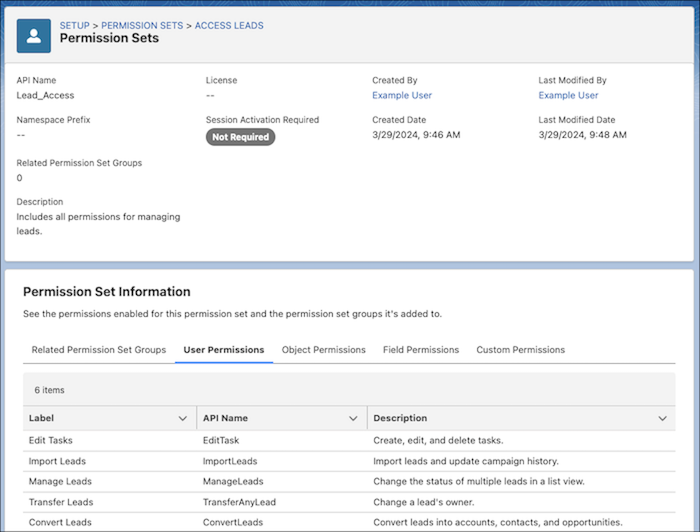 Reviewing the permissions included in a permission set is now easier using the Permission Set Summary. By navigating to a permission set or permission set group and clicking “View Summary,” admins can see the user, object, field, and custom permissions that are enabled for it in a single display. The Related Permission Set Groups tab also shows which permission set groups include the permission set and vice versa.