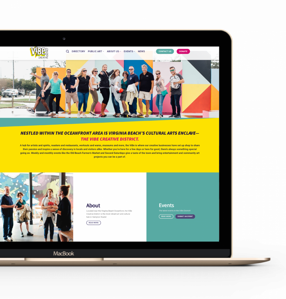 Virginia Beach’s arts and cultural hub is now accessible at your fingertips and on the go. The ViBe Creative District has dynamic new look and feel to its web presence, thanks to an in-kind donation by local technology consulting and web design company Port & Starboard. “As a business, we feel so fortunate to be located in the ViBe, and we wanted their new website to be a valuable resource for the local community. At the same time, the design reflects the energy, creativity, and vibrancy of the people who work and play here,” said Lisa DeNoia, co-founder of Port & Starboard and president of the Friends of the ViBe Creative District.